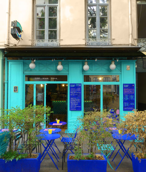 Nous avons participé au rebranding du troquet mythique de la place Fernand Rey et sa terrasse lumineuse, sa fondatrice, Sabrina voulait mettre en avant une cuisine de saison et un lieu de fête pop, vintage et joyeux. 100% terroir, élevé au taquin local